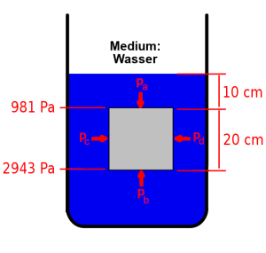 $$ F_{A} = A \cdot \rho_{Medium} \cdot g \cdot (h_{unten} – h_{oben}) = A \cdot \rho_{Medium} \cdot g \cdot h$$