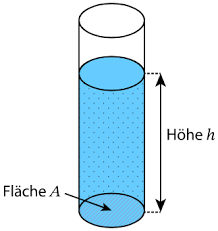 Im Bild stellt A die Fläche der Wassersäule dar, h ist die Eintauchtiefe eines Objektes innerhalb des Gefäßes und g ist die Gravitationsbeschleunigung.