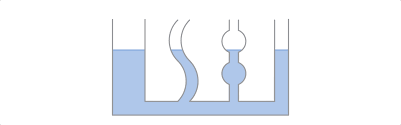 Wenn wir die drei Gefäße nun über ein gemeinsames Becken verbinden würden, würde sich bei allen Röhren die selbe Füllhöhe einstellen.